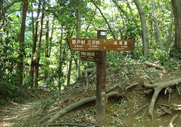 高尾山口駅→(15分)→四辻→(1h10分)→梅ノ木平方面分岐点→(5分)→草戸峠→(10分)→