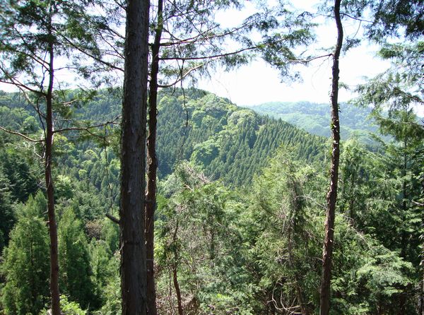 梅ノ木平方面分岐点近くへ来ると、西側の樹木が伐採されて向こうの山が見える。