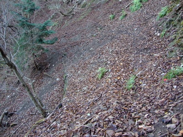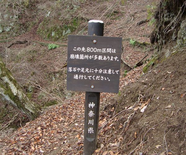 途中、標識のとおり、登山道が崩落している。