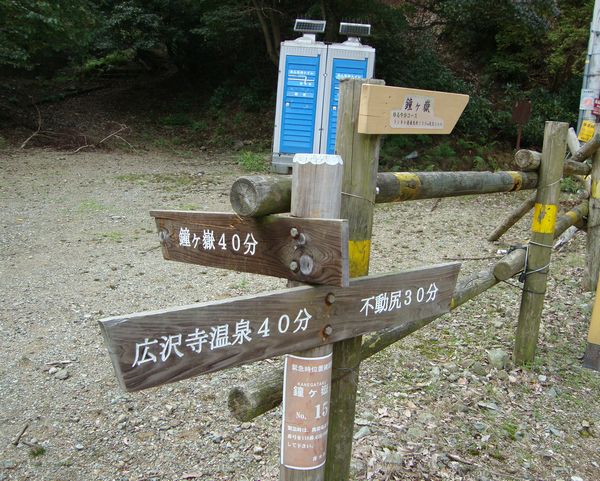 広沢寺温泉入口→(15分)→広沢寺温泉→(40分)→山上隧道→(15分)→見晴台→(40分)→鐘ヶ嶽頂上→(3分)→浅間神社→(60分)→広沢寺温泉入口